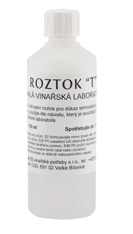 Stabilné víno: Pri dávkovaní roztoku "T" do vína zákal nevzniká alebo prípadne len slabý závoj. Do 3 hodín po ukončení dávkovania nedôjde ku zrážaniu termolabilných bielkovín a k ich usádzaniu na dno skúmavky.
