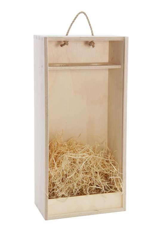 Vyhody registrácieDarčeková kazeta pre 2 fľaše typu FUTURA. Je vyrobená zo svetlej preglejky. Vnútro je vyplnené drevenou slamou. Vnútorný rozmer kazety 16,5 x 8 x 36 cm.