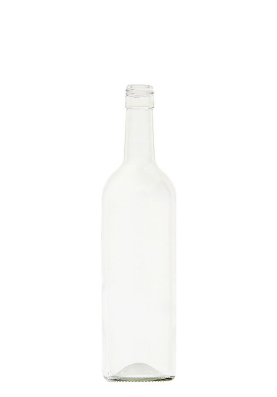 Sklenená fľaša na víno typu bordeaux. Určená pre uzavretie skrutkovacími uzávermi.