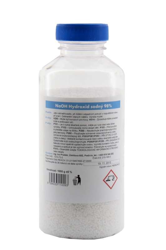 Vyhody registrácieHydroxid sodný - pevný 98% tne NaOH. Šupinky bielej farby. Použitie na čistenie a sanitáciu nádob, zariadení a prevádzkových priestorov. Ďalej ako odmasťovadlo, čistenie odpadových potrubí v rozpustenom stave. Hydroxid sodný, ľudovo zvaný lúh, je veľmi silná žieravina. Iné názvy pre hydroxid sodný sú tiež natron, sodium hydroxide alebo caustic sóda. Chemický vzorec lúhu je NaOH. Hydroxid sodný nie je horľavý ani výbušný, ale za pôsobenia tepla sa môže rozkladať a vytvárať leptavé či toxické plyny. Niektoré z týchto plynov môžu zapáliť horľavé materiály, ako papier, drevo alebo olej. Pri styku s kovom môže vzniknúť vysoko výbušný vodík. Aj napriek tieto riziká je lúh celkom bežným pomocníkom v domácnosti. Lúh je však látka zdraviu škodlivá. Trvalé následky môže spôsobiť pri požití, vdýchnutí, ale tiež pri poleptanie kože a zasiahnutí očí. Poleptanie lúhom sa radí medzi najčastejšie poškodenia zdravia chemikáliami. Lúh môžeme neutralizovať pôsobením zriedeného roztoku kyseliny citrónovej alebo octovej. Prvá pomoc pri poleptaní lúhom Poleptanie lúhom spôsobuje chemickú popáleninu. Stupeň závažnosti poleptanie je ovplyvnený najmä dĺžkou pôsobenia a koncentrácii žieravé látky v prípravku, ktorý poleptanie spôsobil. Pri zasiahnutí kože alebo slizníc žieravinou je vždy nutné lekárske ošetrenie s výnimkou veľmi drobných poranení. Prvá pomoc pri poleptanie kože lúhom: Odstráňte kontaminované časti odevu a obuvi (chemická látka by mohla pôsobiť ďalej na povrch tela a prehlbovať zranenia). Zasiahnuté miesto umývajte veľkým množstvom vody, po dobu aspoň 15 minút. Lúh môžeme neutralizovať pôsobením zriedeného roztoku kyseliny citrónovej alebo octovej. Postihnuté miesto prekryte sterilným obväzom. Vyhľadajte lekára. Na postihnuté miesta neaplikujte žiadne masti a ani inak kožu neošetrujte! Uschovajte originálne obaly, či zvyšky látky, ktorú bolo poleptanie spôsobené. Môžu byť dôležité pre postup lekára pri ošetrení.