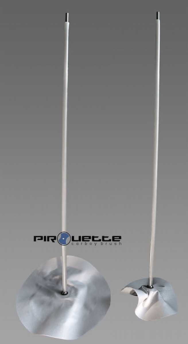 4. Vymáchajte disk vo vliatej vode. Zapnutím aku-vŕtačky disk získa svoj silový tvar. Jemne pohybujte obvodom a spodkom disku po znečistených stenách demižónu a dne tak, aby ste odstránili hrubé nečistoty. Občasne disk vymáchejte vo vode na dne demižónu. Znečistenú vodu vylejte. Táto obsahuje hrubé nečistoty a vínny kameň, ktorý môže poškodiť plastové nádoby.