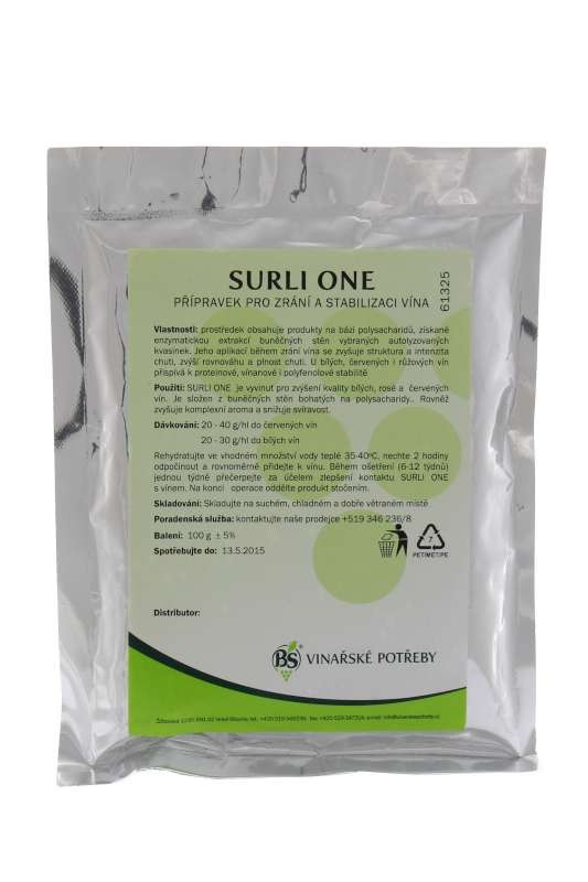 Vyhody registrácieProstriedok pre dozrievanie a stabilizáciu vína. Prostriedok obsahuje produkty na báze polysacharidov. Jeho aplikáciou počas zrenia vína sa zvyšuje štruktúra a intenzita chuti, zvýši rovnováhu a plnosť chuti. Pri bielych, červených aj ružových vínach prispieva k proteínovej, vínanové aj polyfenolové stabilite. Surly ONE je vyvinutý pre zvýšenie kvality bielych, rosé a červených vín. Je zložený z bunkových stien bohatých na polysacharidy. Taktiež zvyšuje komplexné arómu a znižuje trpkosť.