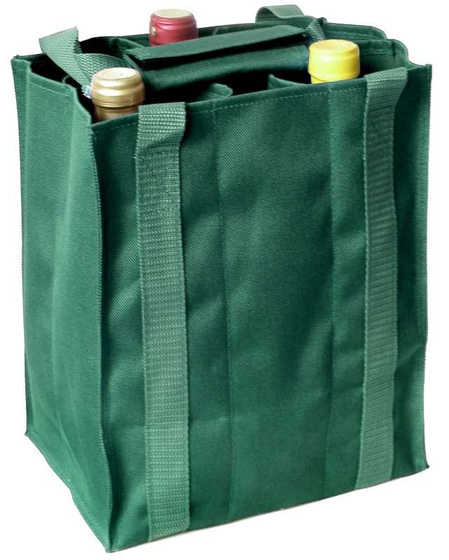 Vyhody registráciePraktická taška na šesť fliaš, prípadne fľaše a poháre. Odolná látka, ucha spojené suchým zipsom, farba zelená.