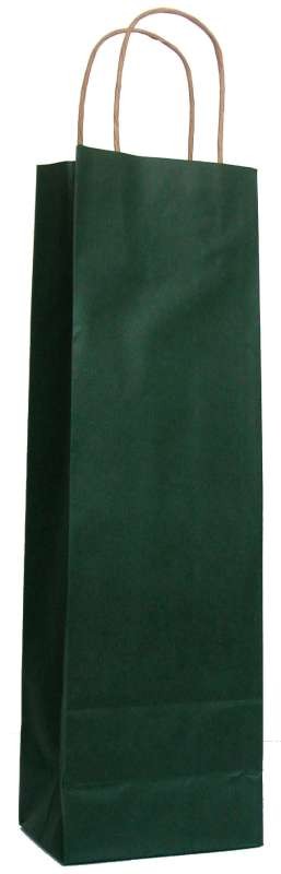 Vyhody registrácieFarebná papierová taška na víno na jednu fľašu, bez potlače, farba zelená. Je vyrobená z kvalitného a pevného materiálu zelený tlač na sulfátové papiera so zelenou krútenou šnúrkou. Vnútorný rozmer 15,0 cm x 8,0 cm x 40,0 cm.