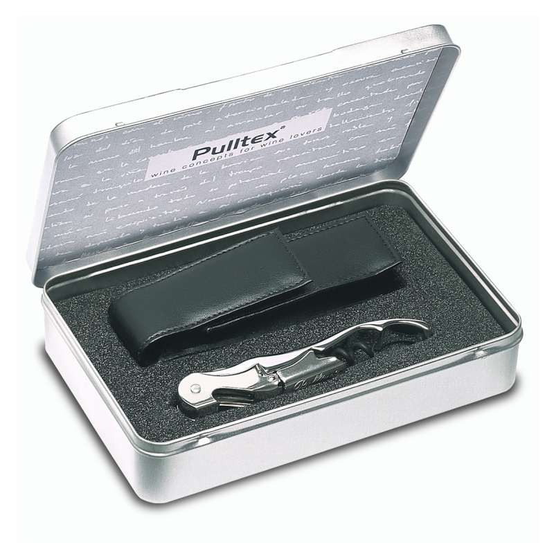 Vyhody registrácieSet vývrtky Pulltap's Classic a koženého puzdra v kovovej krabičke. Obsahuje ergonomicky tvarovanou vreckovú vývrtku v luxusnejšom a masívnejšom prevedení, výborne padnúca do ruky. S teflónovou špirálou a nožíkom pre orez termokapsle. Pomocou tejto vývrtky a jej dvojstupňovej kĺbovej podpory vytiahnete elegantne a rýchlo akýkoľvek korok z fľaše. Farba lesklá chrómová. Čierne kožené puzdro.